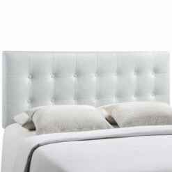 Renew the atmosphere of your bedroom with this charming Daisy headboard from Copper Grove. The straight back headboard is made from MDF, LVL, plywood, up with fabric upholstery available in black or white. The adjustable headboard features deep inset button tufting and stitched detailing, and comes in full size, making this elegant piece the perfect finishing touch to your room.