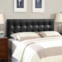 Renew the atmosphere of your bedroom with this charming Daisy headboard from Copper Grove. The straight back headboard is made from MDF, LVL, plywood, up with fabric upholstery available in black or white. The adjustable headboard features deep inset button tufting and stitched detailing, and comes in full size, making this elegant piece the perfect finishing touch to your room.