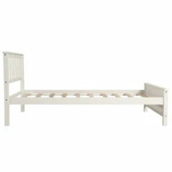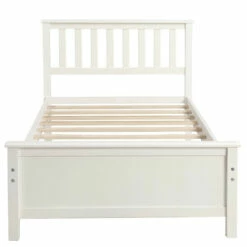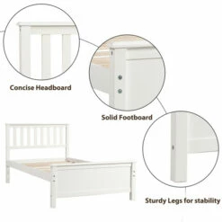 This gorgeously simple platform bed features a headboard, a lower footboard, and wood slats for support. An elegant look makes this bed frame an excellent addition to any bedroom, while your choice of a crisp white or walnut brown finish offers a personalized touch.Β