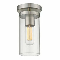This collection is versatile and transitional in style. Classic silhouettes are perfectly matched with clean, modern lines for a mixture of form and function. Bright bulbs shine within ribbed clear glass shades. The linear texture, made by a glass-blowing technique, creates the optical illusion of distortion. The vertical lines in the glass provide gentle diffusion while playfully refracting light. Offered in two highly adaptable finishes; Pewter and Matte Black, the collection is suitable for a variety of decors. This semi-flush was designed for close-to-ceiling applications.