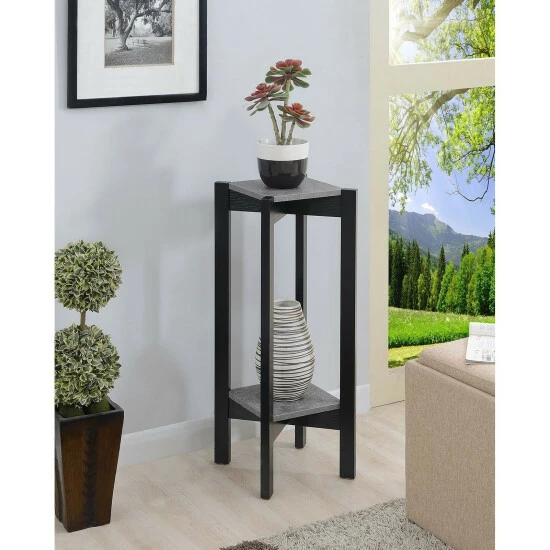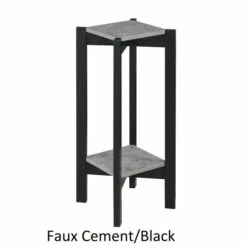 Tired of having to bend over to water your plants on the ground? Are your plants not getting enough sun? The Copper Grove Deluxe Square Plant Stand is here to make your life a little easier. This accent piece will make sure that your plants get the sun they need to grow strong and healthy. The simple, easy transitional style of this two-tier unit allows you to place this stand in any room in your house. The top and bottom shelves are crafted from particle board with a cement pattern laminate, which makes it sturdy enough for your orchids or any other plant or figurine that you may want to display. The sleek thin legs are made of particle board and melamine, adding a modern touch to this classic look. Assemble in just 7 steps! Pair with other stands from the Copper Grove Collection and welcome nature as a home decor. Each sold separately.
