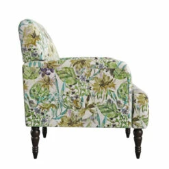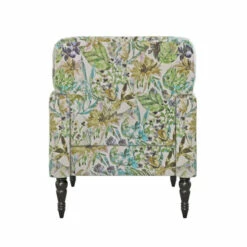 Whether added to your living room, den or office, this arm chair has a versatile transitional design that fits in perfectly just about anywhere. The chair is covered in a durable, easy clean soft velvet botanical floral printed fabric and features a square back and square arms. Tight seat and back cushions filled with foam and fiber over a sinuous-spring seat deck provide comfort, style and a medium-firm seating surface.