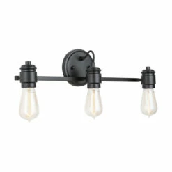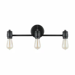 This three-light bath/vanity fixture features a beautiful matte black finish that will complement many urban and industrial decors throughout your home. The clean lines of the metal frame add interest while the exposed bulbs provide ample light to many bathroom spaces.
