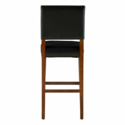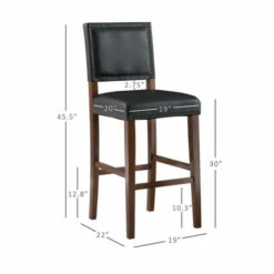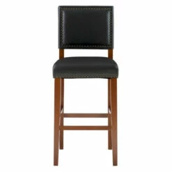 Create a contemporary-classic look in your kitchen or dining area with the sleek shape and style of this eye-catching bar stool. Solid legs give this courtly stool additional strength ensuring years of everyday use. The padded cushion will provide optimum comfort for you and your guests and is upholstered with durable faux leather vinyl that is stain resistant, fade resistant and features tightly woven threads that won’t break, mat or peel. This chair is accented with antique bronze nail-head trim that will complete your classic dΓ©cor.Β