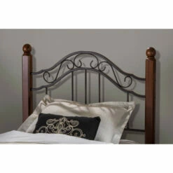 This striking headboard, ideal for revamping your personal sanctuary in one fell swoop, showcases a black metal grill scrollwork centerpiece, sandwiched between two espresso wood poles with spherical toppers, to impart strength and sturdiness. Bring your traditional bedroom decor full circle with this headboard, and give your living space a bit of contemporary spice.