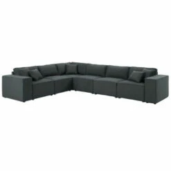 With a becoming construction worthy of contemporary, small-space living, this European-style modular sectional sofa is the perfect choice for you to entertain your guests in style and comfort! The low-back, thick seat cushions and arms, welt finish, and accent pillows are all features of this charming living room ensemble.