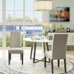 The peculiar and old school glamour pop in this pair of armless dining chairs provides a distinctively familiar charm, while the supple fabric and clean-lined design elevate this chair with a futuristic pop. Offer your space a pop of chic style with this must-have Parsons chair. A contemporary twist on elegant design, this eye-catching twosome will liven up any look.Β