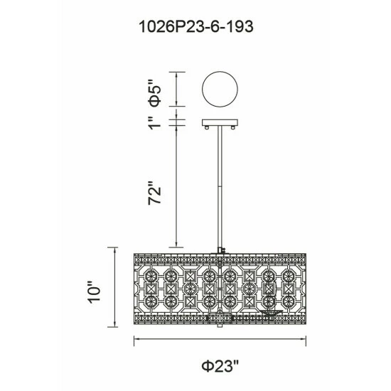 Dimensions: H 10 inches x W 23 inches x D 23 inches – Champagne Finish – Requires 6 E12 Bulbs Max 60 W (sold separately) – Includes 72 inches of Rod