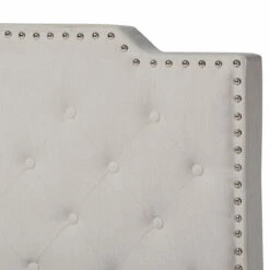 Elevate your bedroom with the eye-catching Enzers bed from Copper Grove. The rubberwood frame is padded with foam, upholstered with linen-like polyester, and detailed with button tufting and nailhead trim. Choose from three sizes and two upholstery colors to complement your decor.