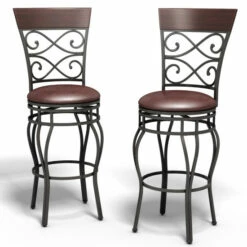 Add some extra seating to your home with this 2-piece vintage bar chair set. This chair allows you to swivel and move around with ease. They have thick cushions so you can rest comfortably. Sturdy and powder-coated metal frame provides years of durable and reliable use.