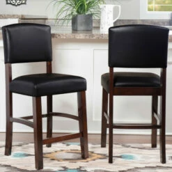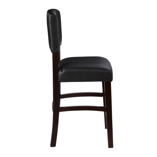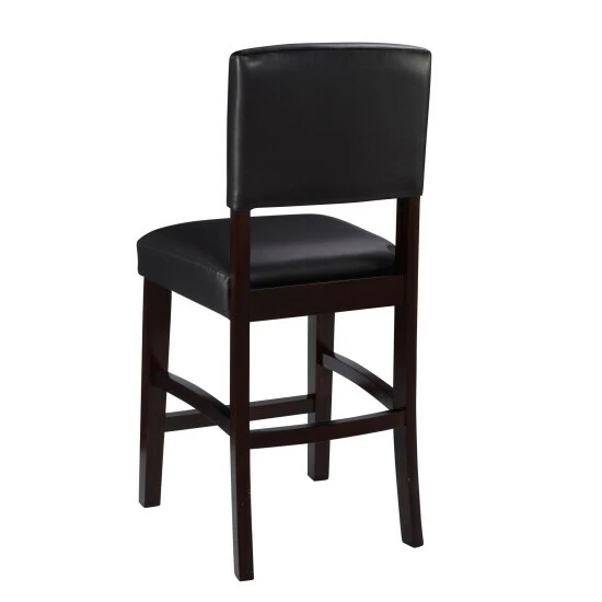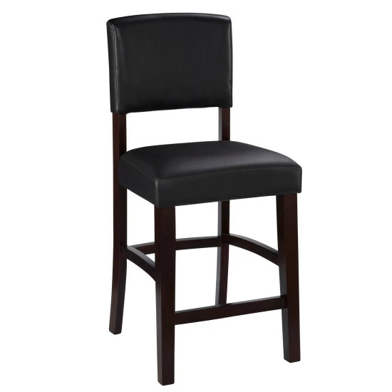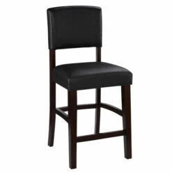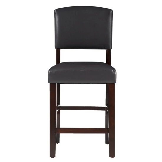 Create a contemporary-classic look in your kitchen, dining or bar area with the sleek shape and style of the Copper Grove Falesti Faux Leather counter stool. Its solid wood legs in a Rich Espresso finish give this courtly stool additional strength, ensuring years of everyday use. The padded cushion will provide optimum comfort for you and your guests and is upholstered with a Dark Brown Faux Leather vinyl that is stain resistant, fade-resistant, and features a cutout back for added interest.Β