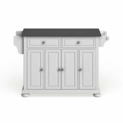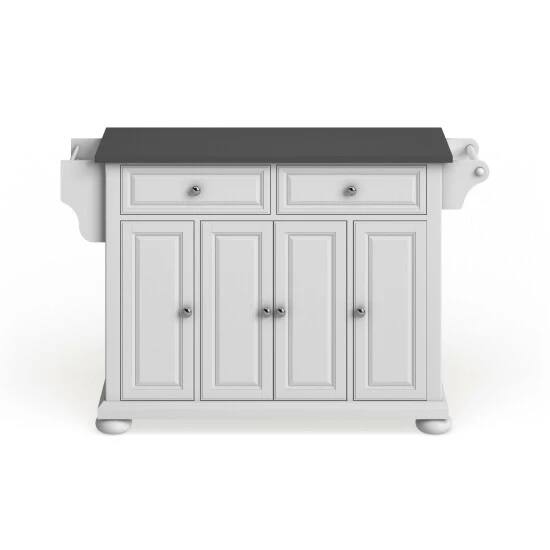 Amplify the storage space in your kitchen with the Filbert kitchen cart from Copper Grove. Finished in satin white and topped with stainless steel, this kitchen island is designed to offer convenient meal prep through years of use.