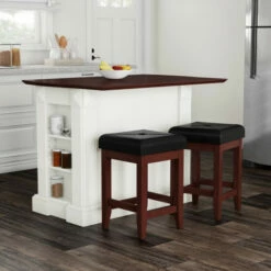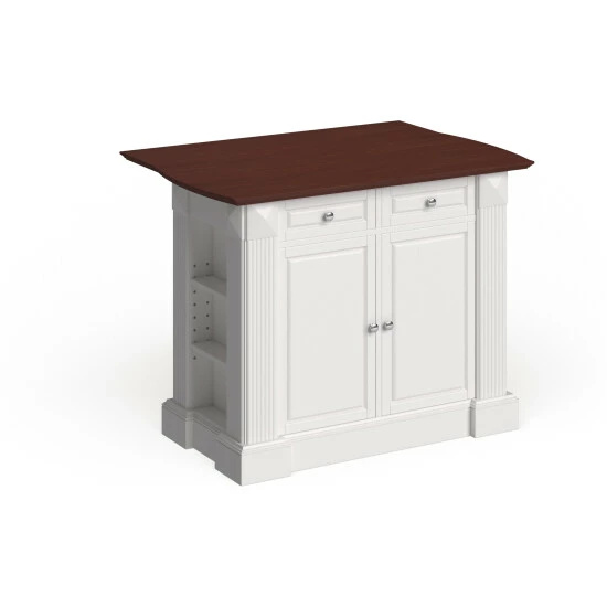 Add efficiency to your kitchen with this white-finished kitchen island and stool set from Copper Grove. Featuring an intuitive design with adjustable shelves in the cabinets and open storage on either side for easy access to frequently used items, this island makes meal prep feel like an art, rather than a chore.