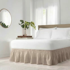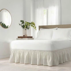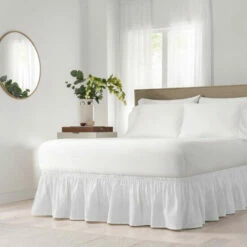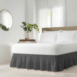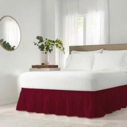 Give your bed a charming finish with this ruffled bed skirt. Available in a whole host of colors, this piece offers options to complement or pleasantly contrast with your quilt or comforter, and this bed skirt’s wrap-around design is easy to install without having to lift your mattress.