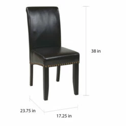 Imbue a chic and sleek element into your home with the lovely design of this faux leather parsons chair. Sumptuous faux leather decorated with a nailhead trim brings a combination of contemporary flair and classic elegance to the chair. The rich look of the upholstery brings distinctive and distinguished grace to decor of all kinds.