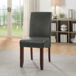 Enjoy your morning coffee in this Five Bridge Parsons dining chair. The hardwood frame is designed to match your other hardwood furniture, and the upholstery gives this chair a contemporary look. Made with a thick, foam padding, this dining chair features a slightly contoured back, which supports your frame while sitting. This durable chair is ideal for use while you have your afternoon snack, or while helping your kids with homework.
