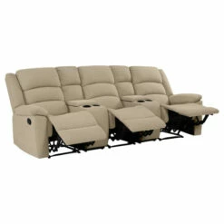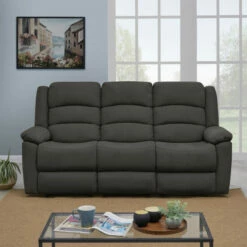 - Three piece sofa recliner includes a left and right arm reclining seat and an armless center reclining seat