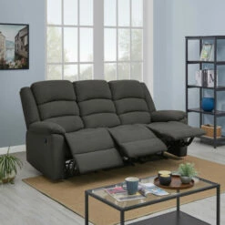 - Three piece sofa recliner includes a left and right arm reclining seat and an armless center reclining seat