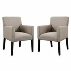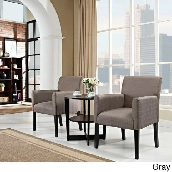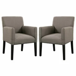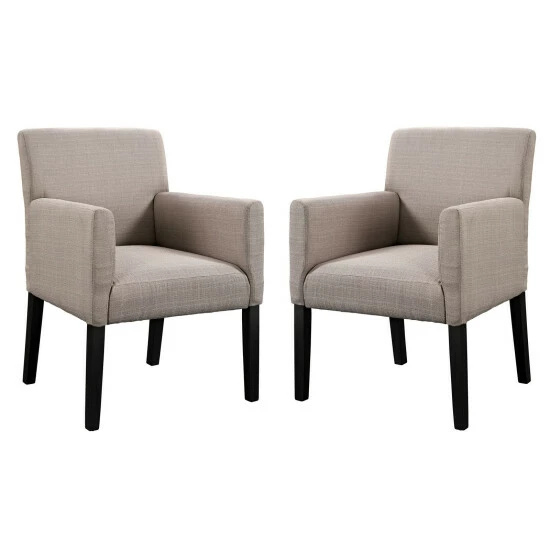 This delightful armchair provides the perfect accent piece for a variety of settings. Its comfortable fabric construction, with four dark wooden legs, can be used in just about any living space, and best of all, you can choose between grey and beige.