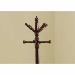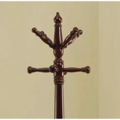 Complete the functionality of your home with this traditional style solid wood coat rack. A warm dark cherry finish completes the classic appeal of this triple tiered coat stand with 11 hanging pegs for your coats, hats, scarves, shawls, or sweater. The beautiful turned post anchored with a sturdy pedestal base brings plenty of stylish storage into your living space, making it easy to organize your entryway, hallway, bedroom, or office space.