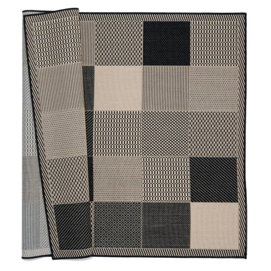 Bring an exciting touch into your interior or exterior decor with this lively rug. Neutral shades complete this fun and quirky checkered design. This beautiful yet practical rug is made for high traffic areas and is easy to clean. This exquisite rug is made from 100% polypropylene for long-lasting durability and stain resistance to fit your lifestyle needs.