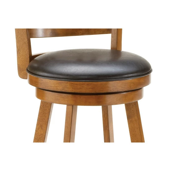 This Grayling oak-finish stool from Copper Grove is an idea combination of appearance and comfort. The backrest is curved and pairs with the padded, stain-resistant faux leather seat to make this stool a joy to sit on. The Grayling stool is also attractive, with a medium oak finish and dark brown upholstery to match most decor.