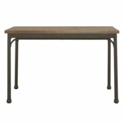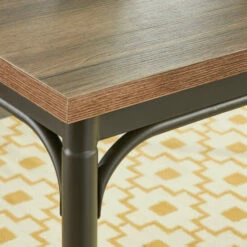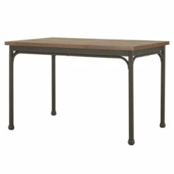 Perfect for small, compact spaces, this brown dining table provides your dining space with a pop of pizzazz. A brown veneer table top blends well with almost any color scheme and showcases a realistic wood grain pattern, while sturdy metal table legs are topped off with a sleek, powder-coated, dark brown finish and an industrial flair.