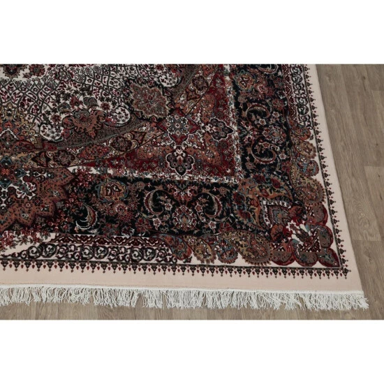 Embellish your living room or dining room with the traditional elegance of this area rug. This Oriental rug is created with a stain-resistant blend of wool and acrylic fibers, making it pet friendly and ideal for high-traffic situations.