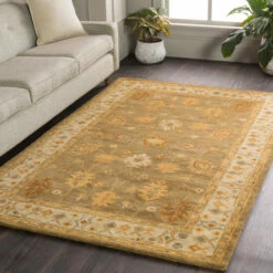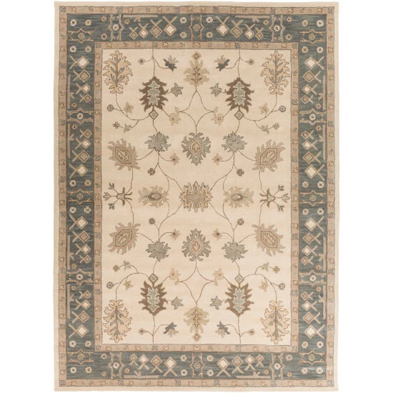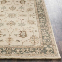 Bring an attractive look and reliable feel to your space with this trendy Harrat area rug from Copper Grove. The hand-tufted rug is constructed from 100-percent wool and features a rectangular shape and traditional style. The oriental pattern is available in green or ivory, and holds up well in moderate traffic.