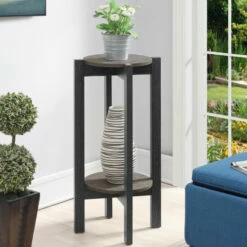 Offering two shelves for displaying two plants, collectibles, or anything else, this lovely piece boasts a faux cement finish on the shelves, making it ideal for coordinating easily with your current decor. In your choice of three color schemes, this piece is sure to provide the ideal accent to your space, not to mention the perfect place to show off your favorite things.Β