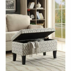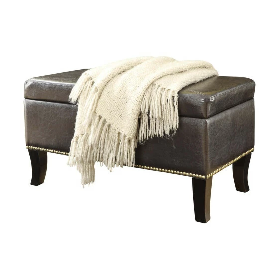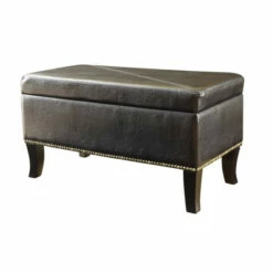 Stylish, cozy, and functional, the Copper Grove Helena Winslow Upholstered Storage Ottoman will be a necessity in your favorite living space. Whether you need a place to kick up your feet and relax or additional storage space, this ottoman is for you! This elegant ottoman showcases a clean-lined hinge lid paired perfectly with the gorgeous accented nailhead trim. Easily lift the top up to reveal plenty of storage space to keep your room clutter-free and organized. The dark solid rubberwood feet ensure that this piece will be reliable as it is beautiful. Available in a variety of finishes and fabrics from faux leather to velvet, there is sure to be a finish that will fit the comfort of your home. Assemble this contemporary piece in a matter of minutes thanks to the easy instructions and tools provided!