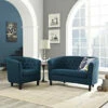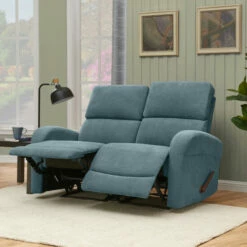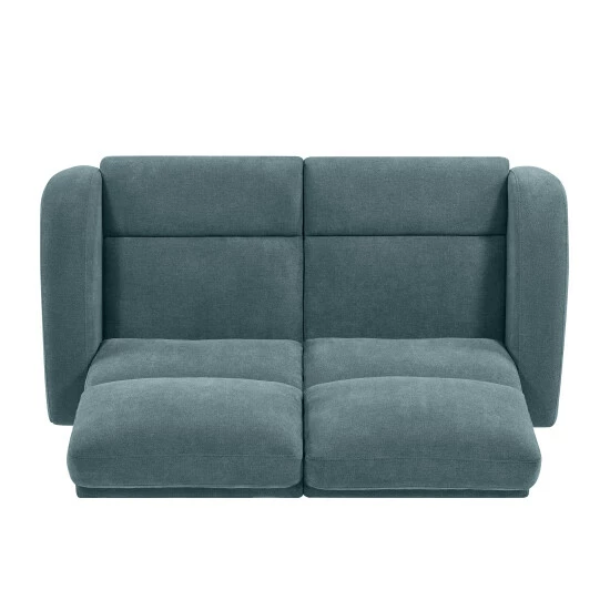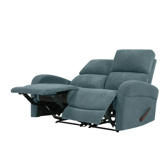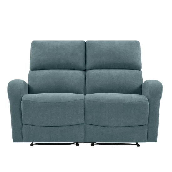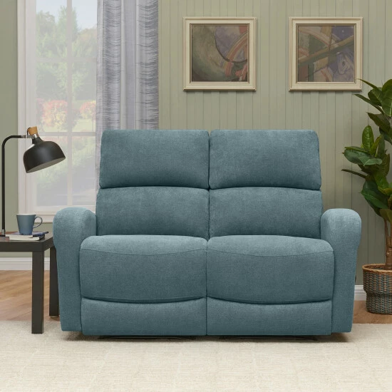 Update your home with this comfortable Copper Grove modular loveseat that is covered in a durable, easy clean medium blue chenille fabric. The two piece loveseat recliner includes a left and right reclining arm seat that secure together through a button and slot connection on the frame so they will not slip apart. The recliner loveseat features easy to open and reach handles on each end for reclining. This comfortable loveseat is perfect for long-term sitting, TV viewing and relaxed reclining in theater, media and living rooms.