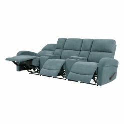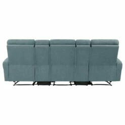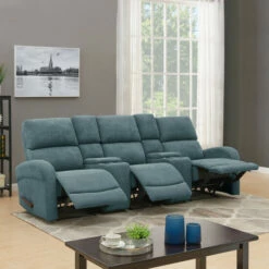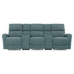 Update your home with this comfortable Copper Grove modular sofa that is covered in a medium blue chenille fabric. The five piece sofa recliner includes a left and right reclining arm seat, an armless center reclining seat and 2 center consoles that secure together through a button and slot connection on the frames so they will not slip apart. The recliner sofa features easy to open and reach handles for reclining on each end with cup holders, deep well storage 2 USB ports and 2 standard outlets in each center console that allows you to keep things conveniently close at hand but out of sight as well as to charge your electronic devices. This comfortable sofa is perfect for long-term sitting, TV viewing and relaxed reclining in theater, media and living rooms..
