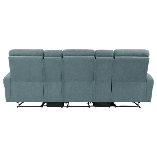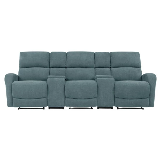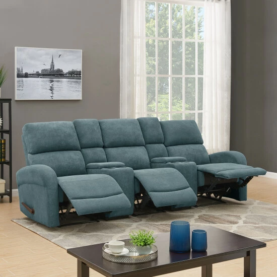 - Five piece sofa recliner includes a left and right arm reclining seat, 1 armless center reclining seat and 2 center storage consoles