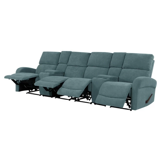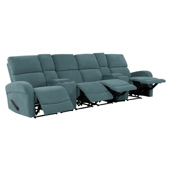 - Six piece sofa recliner includes a left and right arm reclining seat, 2 armless center reclining seats and 2 center storage consoles
