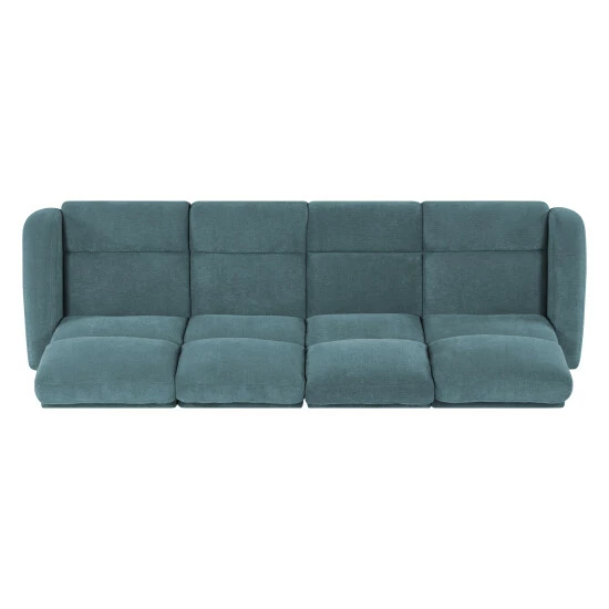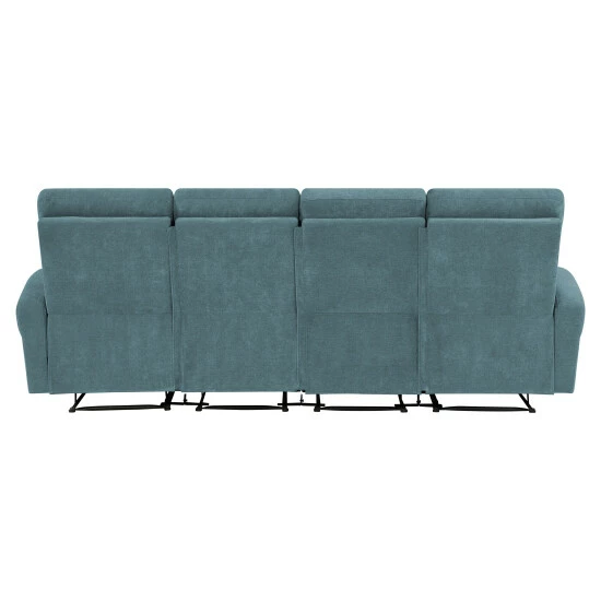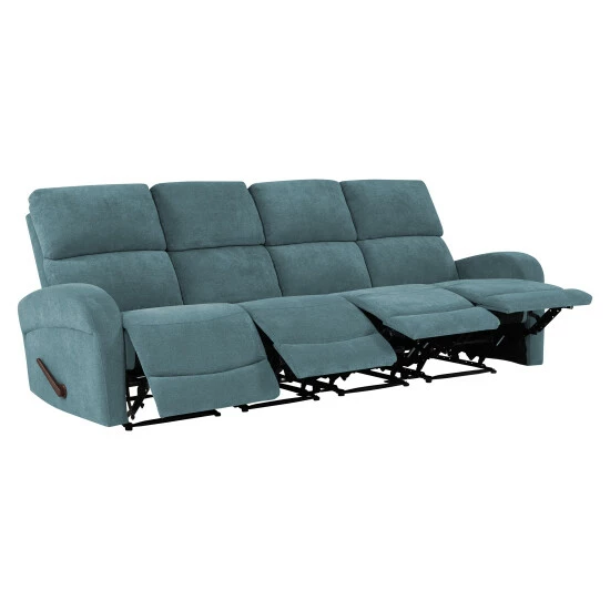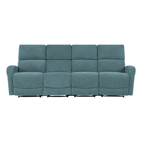 - Four piece sofa recliner includes a left and right arm reclining seat and two armless center reclining seats
