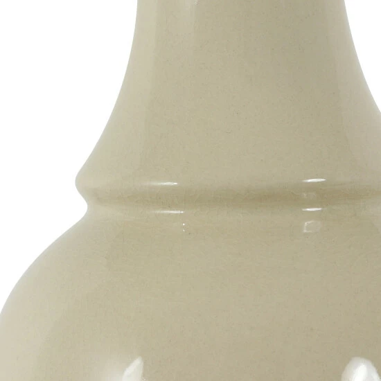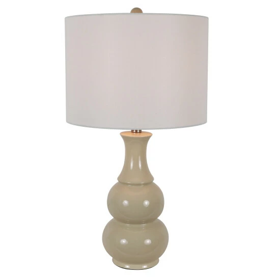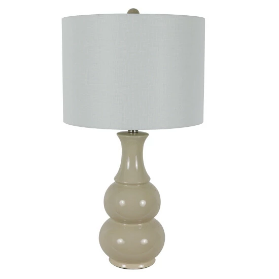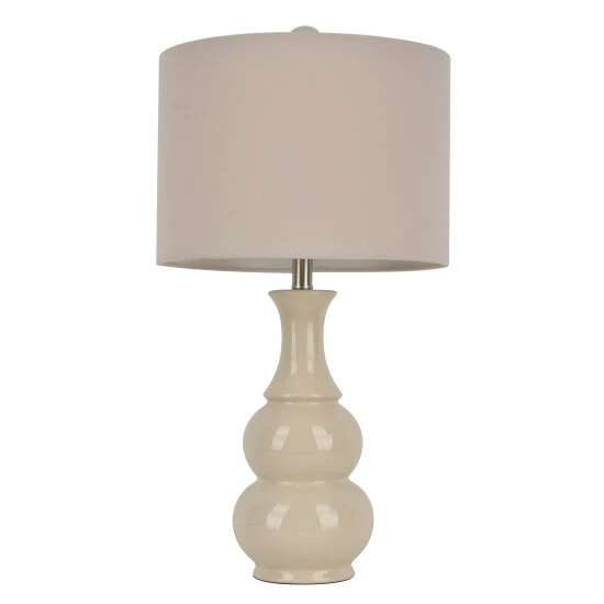 Bring more light and style into your space with this 26.5-inch table lamp. This lovely lamp is constructed of ceramic with an ivory finish and paired with a brushed nickel neck and tan shade.