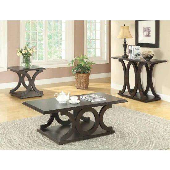 Make a statement in your living room with the cappuccino oval accent sofa table. This attractive table is constructed of MDF with a rich cappuccino finish and a unique oval base design.