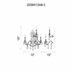 This breathtaking 3-light Wall Sconce with Antique Brass Finish is a beautiful piece from our collection. With its sophisticated beauty and stunning details, it is sure to add the perfect touch to your decor. – Dimensions: H 18 inches x W 10 inches x D 13 inches – Antique Brass Finish – Requires 3 E12 Bulbs Max 60 W (sold separately) – Traditional Style