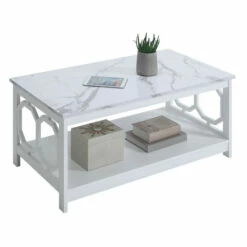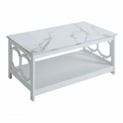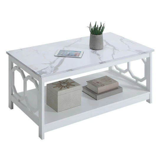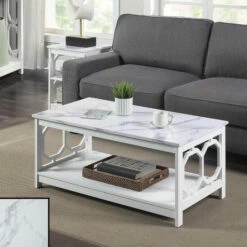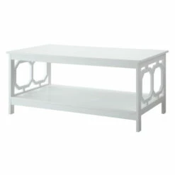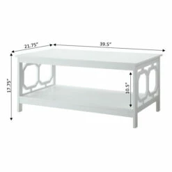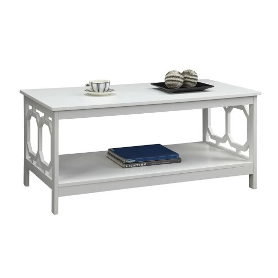 Add a pop of pattern to your living room with the Copper Grove Hitchie Coffee Table with Shelf. Available in multiple finishes and great for smaller spaces; this contemporary coffee table with a subtle geometric detail is sure to make a statement in any room in your home. This simple yet eye-catching design showcases clean lines and beautiful octagon side cut-outs. Two tiers of spacious shelving offer plenty of room for home decorations; entertainment essentials; and storage. Crafted for long-term use; this sleek table is engineered from manufactured wood and finished with smooth non-lead-based paint.Β