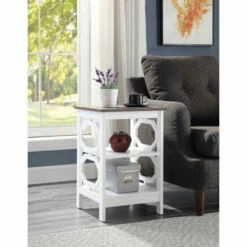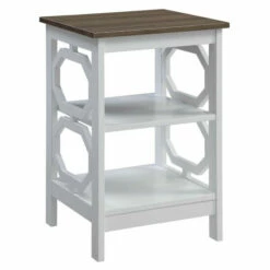 Bring home a pop of pattern with the Copper Grove Hitchie End Table. Available in multiple finishes and great for smaller spaces; this contemporary end table with a subtle geometric detail is sure to make a statement in any room in your home. This simple yet eye-catching design showcases clean lines and beautiful octagon side cut-outs. Three tiers of spacious shelving offer plenty of room for home decorations and entertainment essentials. Crafted for long-term use; this sleek table is engineered from manufactured wood and finished with smooth non-lead-based paint.