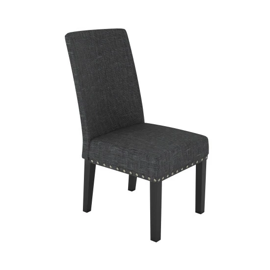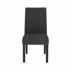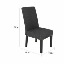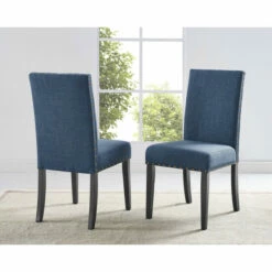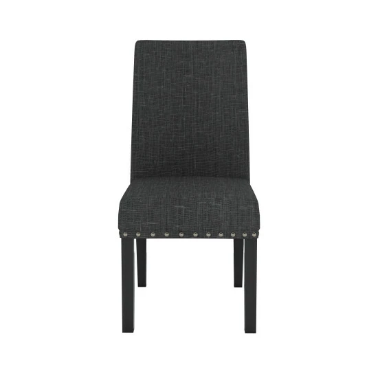 Ideal for a dining room, this set of two beautiful chairs offers comfort and style. The nailhead trim elegantly complements the simple upholstery and espresso finish legs, enhancing any decor with effortless sophistication.