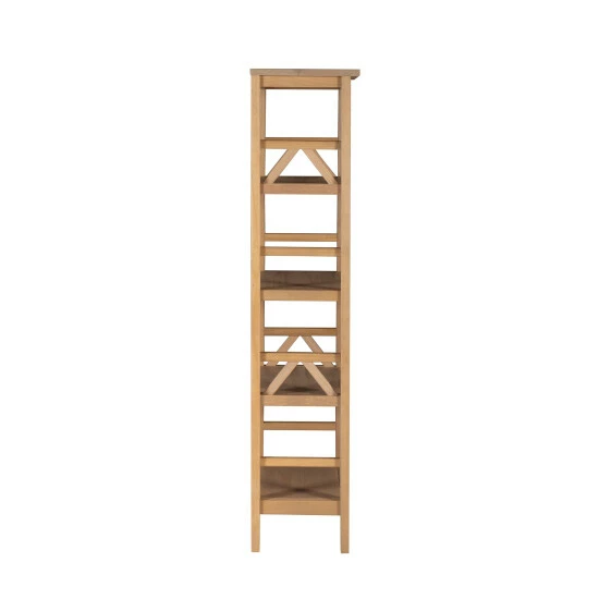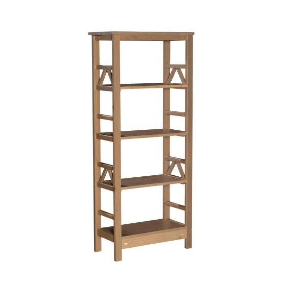 Fashionable and fun, this bookcase features a beautiful driftwood finish, sure to complement your decor. Four shelves, with open geometric cut-outs on each side, provide you with ample space to display your favorite books, movies, photographs and decorative pieces.Β