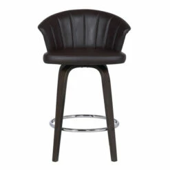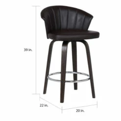 The Wood Back Swivel Faux Leather Bar Stool is a great fit into any contemporary or mid-century modern kitchen. The beautiful channel stitching on the inside of the back is accompanied by a walnut glazed wood on the outside. The is upholstered in faux leather and swivels for optimal function. The is available in two standard heights; 26″ and 30″. Β Β Β Included: 1 Stool Β Seat Material: Faux Leather Β Frame Material: Wood Β Swivel: Yes Β Seat Height: 26″ Counter Stool 30″ Bar Stool Β Color: Brown Β Assembly Required: Yes Β Note: Fabric color and saturation may vary due to lighting and monitor/phone screen settings Β Comes with standard 1-year limited warranty Β Product Dimensions: 22″W x 20″D x 39″H SH: 30″