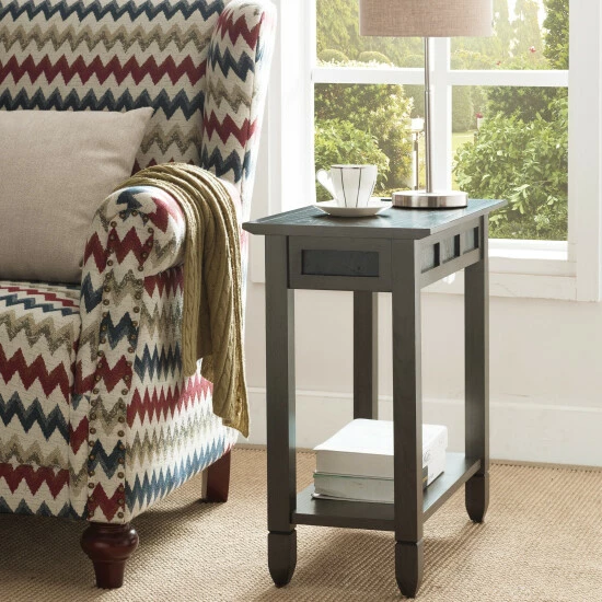 Bring elegance and appeal into your home with this lovely chairside table. This table features a rustic oak finish and is constructed with one drawer. Constructed with hardwood solid and veneer material, this table is perfect any apartment or small space in your home.