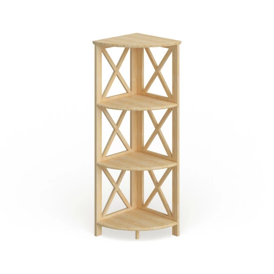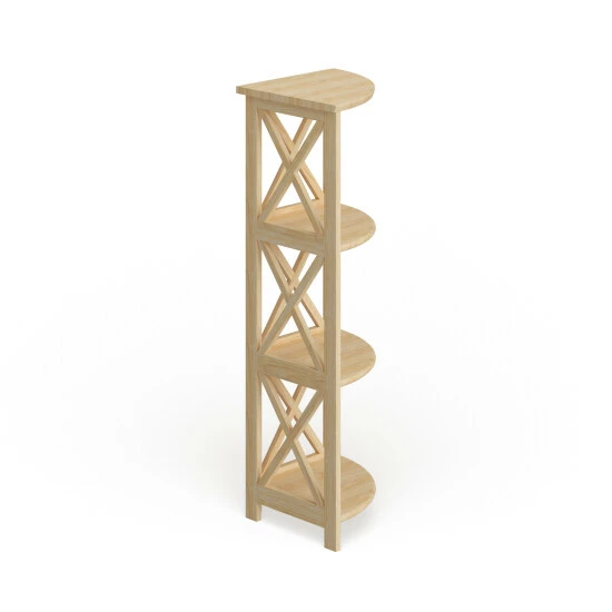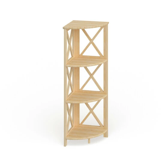 Maximize any corner in your home with this charming little bookcase. The four shelves provide space for decor and display while maintaining a sturdy balance with the X-side design and solid wood construction.