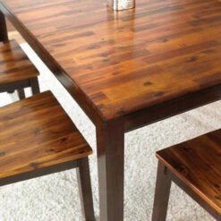 This Tolland dining table from Copper Grove offers you a great way to make your dining room more comforting, both with its useful features as well as its warm appearance. If you are ever throwing a party or expecting guests, simply use the self-storing butterfly leaf to extend the table out an additional foot. Your guests will appreciate the warm glow of the solid acacia wood’s two-tone brown and natural finishes.