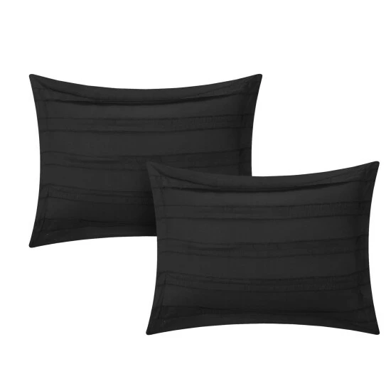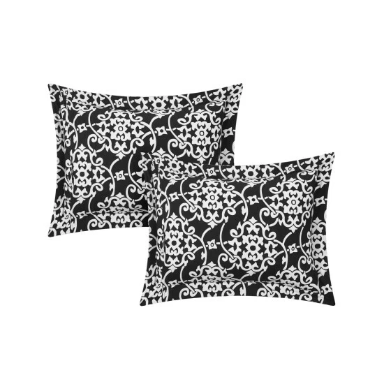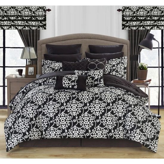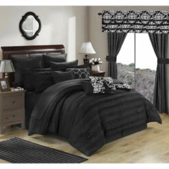 Upgrade your bedding with this 24-piece set from Copper Grove. The reversible comforter features a textured black top and a medallion print that can be emphasized with the included shams and decorative pillows. Finish off your bedroom with the patterned valances and chic black curtains.