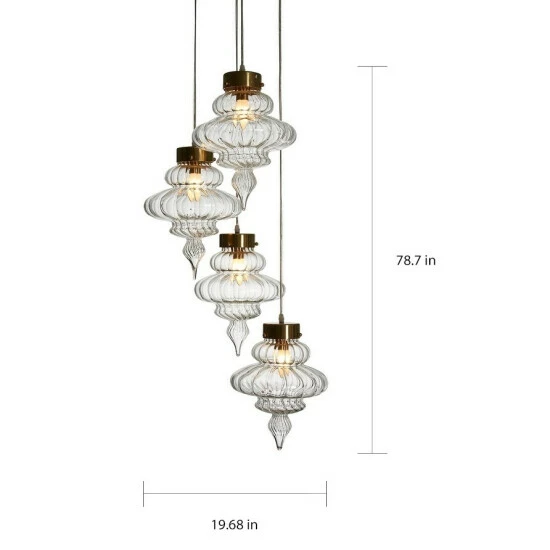 Flaunting four hand-blown crystal shades shaped to a smooth billowing effect, this chic piece offers not only illumination, but also a stylish accent piece for a variety of spaces. A stunning combination of illuminating crystal, this four-light pendant lamp provides the bright accent lighting and refined style.
