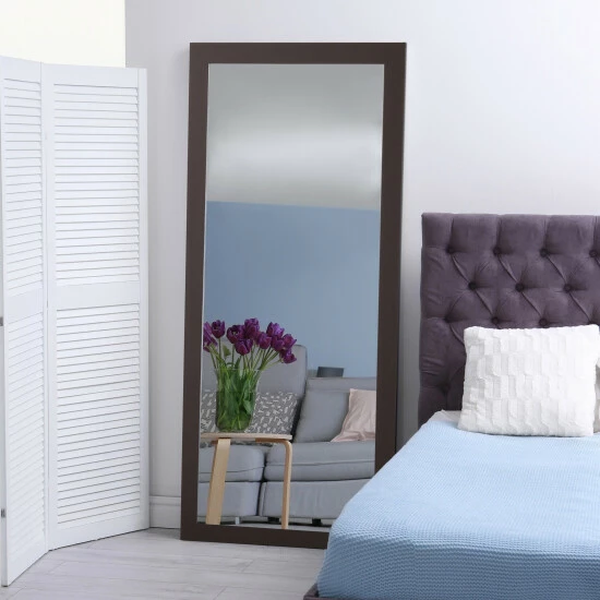 Display a fascinating fusion of functionality and style in your home, with this modern, full-body, matte black framed floor mirror: an impressive accessory to hang or lean in your bedroom, bathroom or living space. Four hooks are pre-installed allowing for a vertical or horizontal wall installation.